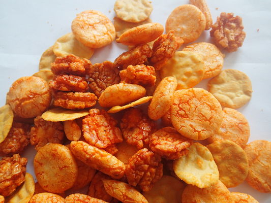 Riso glutinoso, riso, farina di mais, arachidi, amido della tapioca, amido, maltodestrina, zucchero, salsa di soia, sale, alga, sesamo, E110, E160C
